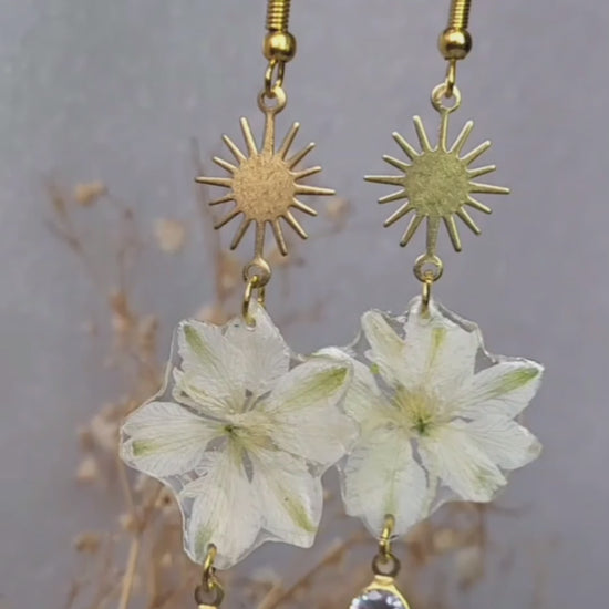 A celestial ode to nature, the Celeste Bloom Set captures the timeless elegance of white blossoms preserved in crystal-clear resin. Each petal is framed in radiant gold tones and paired with sunburst motifs and delicate crystals for a luminous touch.